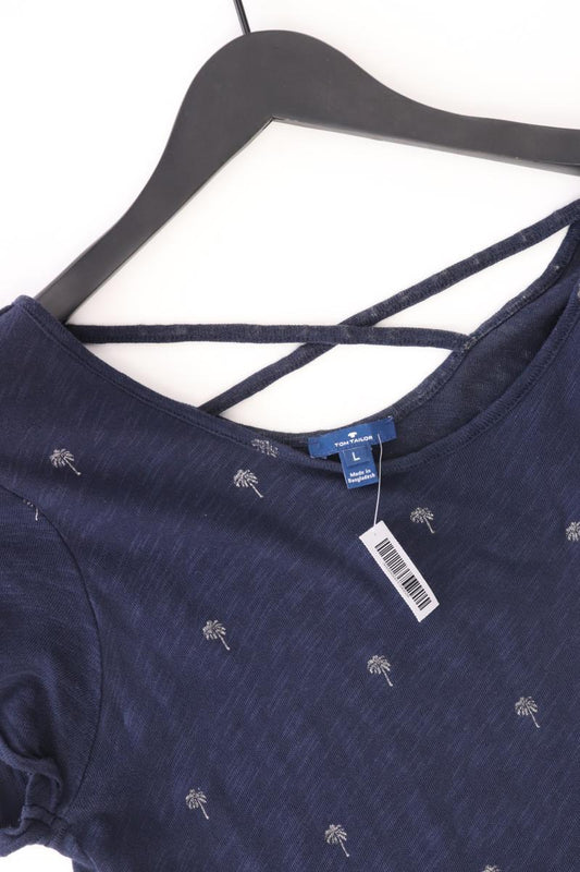 Tom Tailor T-Shirt mit Palmenmuster Gr. L Kurzarm blau aus Baumwolle
