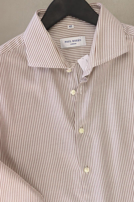 Paul Rosen Langarmhemd für Herren Gr. Hemdgröße 42 gestreift braun aus Baumwolle