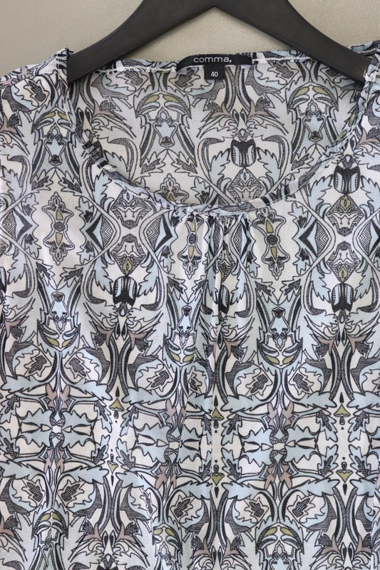 comma, Ärmellose Bluse Gr. 40 geometrisches Muster blau aus Polyamid