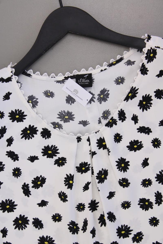 s.Oliver Black Label Kurzarmbluse Gr. 42 mit Blumenmuster weiß aus Polyester