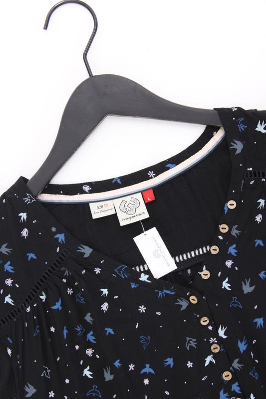 Ragwear Bluse mit Vogelmuster Gr. L mit Tierdruck Kurzarm schwarz aus Viskose