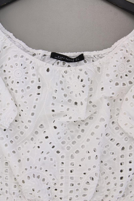 Zara Crop Bluse Gr. L Kurzarm weiß aus Baumwolle