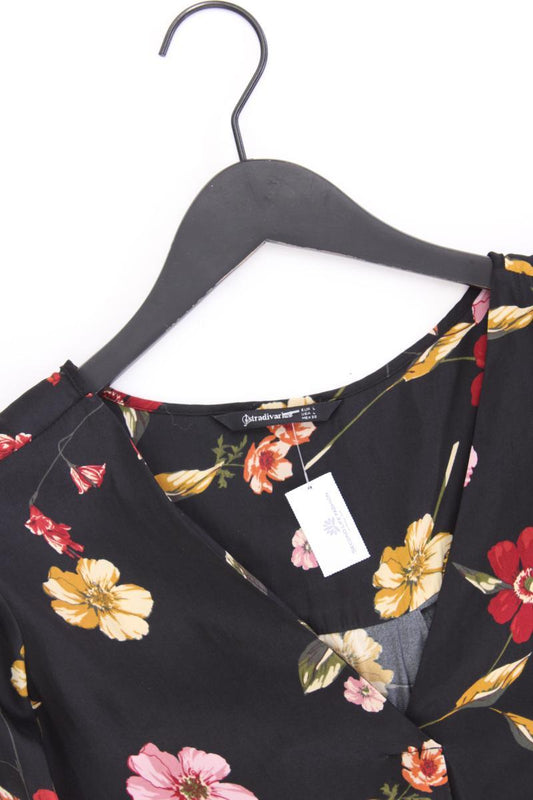 Stradivarius Classic Bluse Gr. L mit Blumenmuster 3/4 Ärmel schwarz