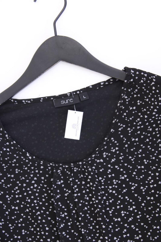 Sure Bluse mit Herzmuster Gr. L Langarm schwarz aus Polyester