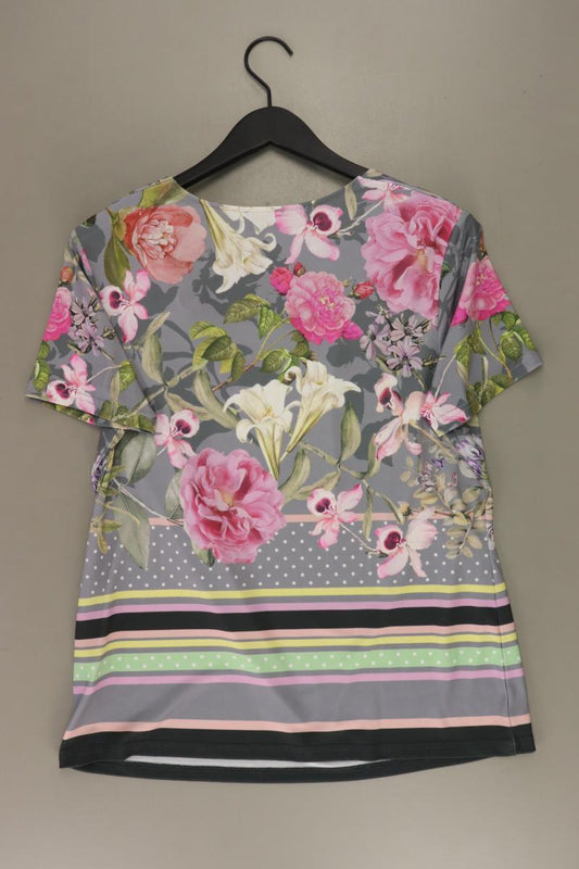 Taifun Kurzarmbluse Gr. 42 mit Blumenmuster neuwertig grau aus Polyester
