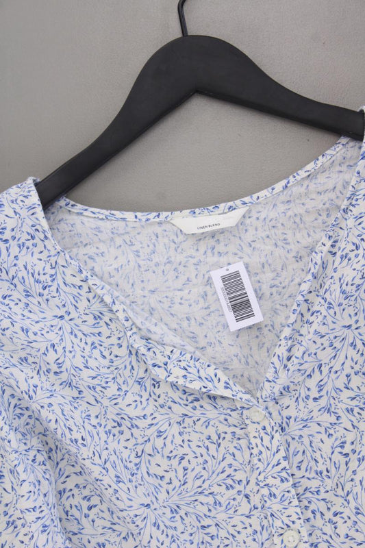 H&M Bluse mit Leinen Gr. 46 mit Blumenmuster 3/4 Ärmel blau