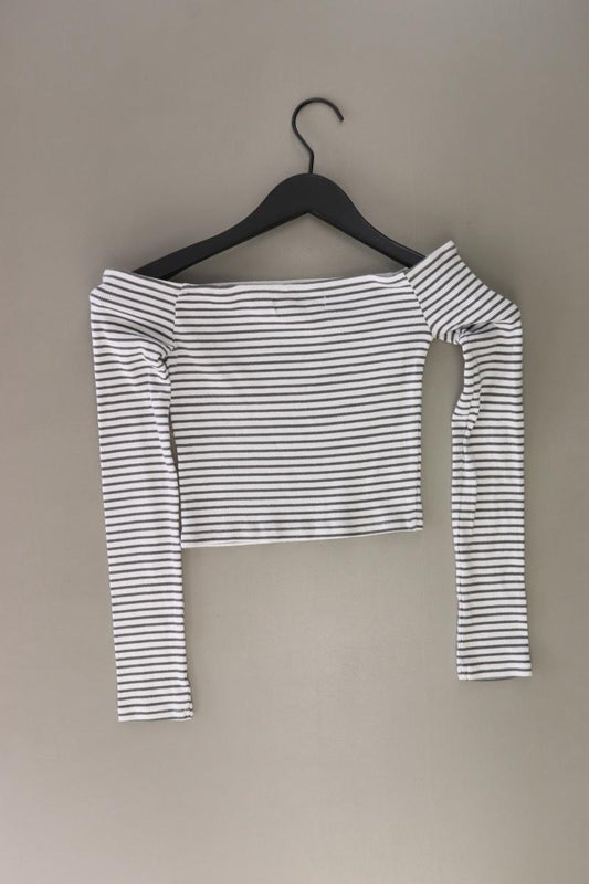 Pull&Bear Cropped Shirt Gr. S gestreift 3/4 Ärmel mit Carmen-Ausschnitt weiß