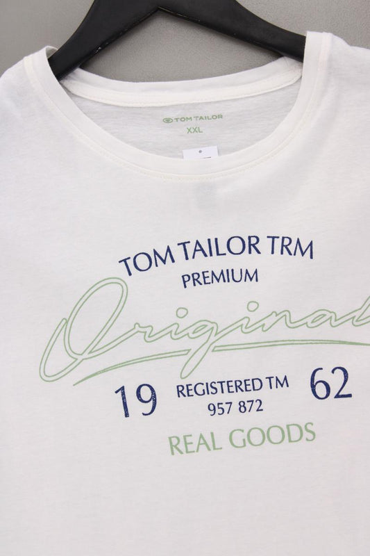 Tom Tailor Printshirt für Herren Gr. XXL Kurzarm weiß aus Baumwolle
