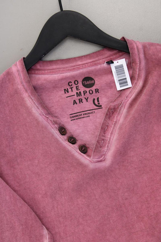 !Solid Shirt mit V-Ausschnitt für Herren Gr. S Langarm rot aus Baumwolle