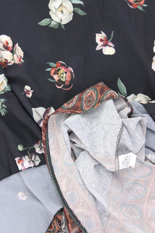 Midikleid Gr. OneSize mit Blumenmuster 3/4 Ärmel mehrfarbig aus Polyester