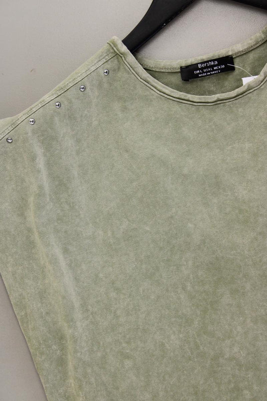 Bershka Kurzarmkleid Gr. L grün aus Baumwolle