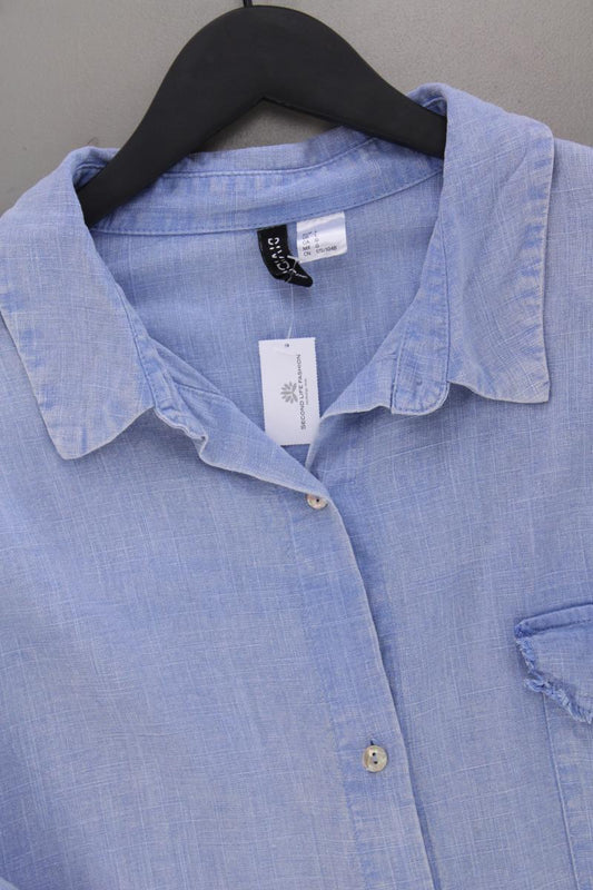 H&M Divided Bluse mit Leinen Gr. L Langarm blau aus Viskose