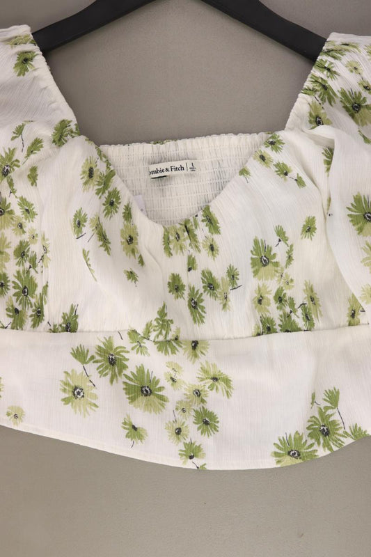 Abercrombie & Fitch Crop Bluse Gr. L mit Blumenmuster 3/4 Ärmel weiß