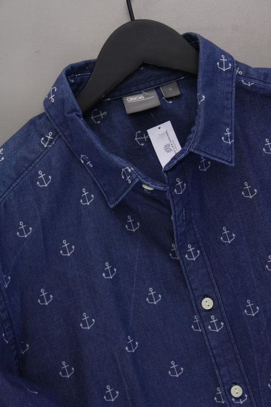 Asos Hemd mit Ankermuster für Herren Gr. XL Langarm blau aus Baumwolle