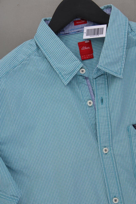 s.Oliver Karohemd für Herren Gr. L kariert Kurzarm türkis aus Baumwolle