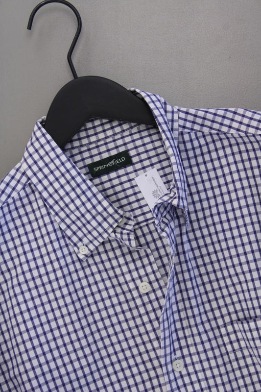 Springfield Langarmhemd für Herren Gr. L geometrisches Muster blau aus Baumwolle