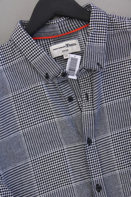 Tom Tailor (Denim) Langarmhemd für Herren Gr. XXL hahnentritt grau aus Baumwolle