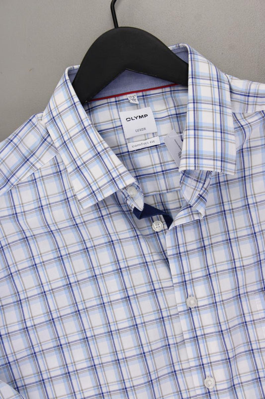 Olymp Karohemd für Herren Gr. Hemdgröße 44 kariert Langarm blau aus Baumwolle
