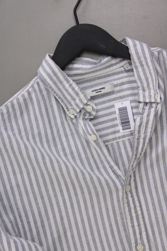 Jack & Jones Langarmhemd für Herren Gr. L gestreift grau aus Baumwolle
