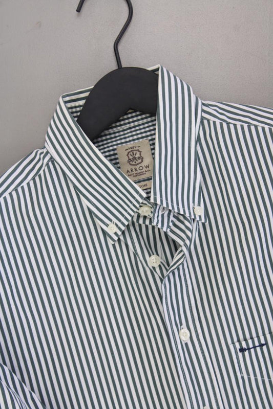 Arrow Langarmhemd für Herren Gr. M gestreift grün aus Baumwolle