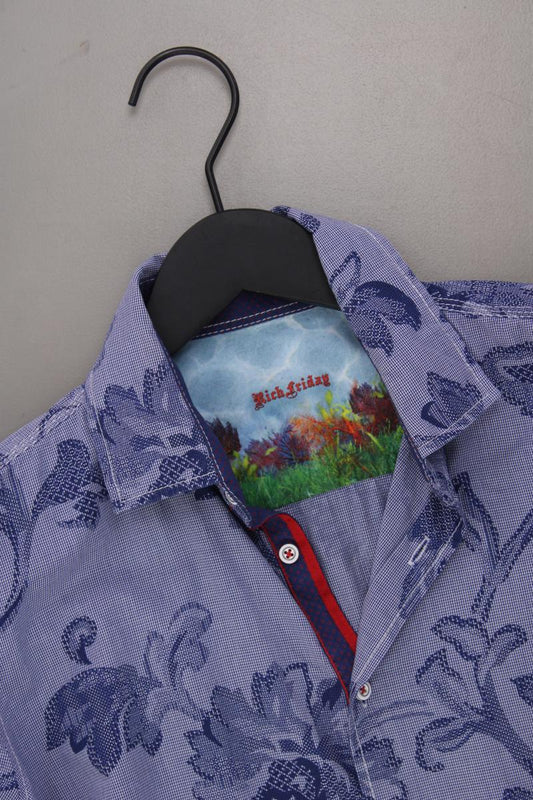 Rich Friday Langarmhemd für Herren Gr. S mit Blumenmuster blau aus Baumwolle
