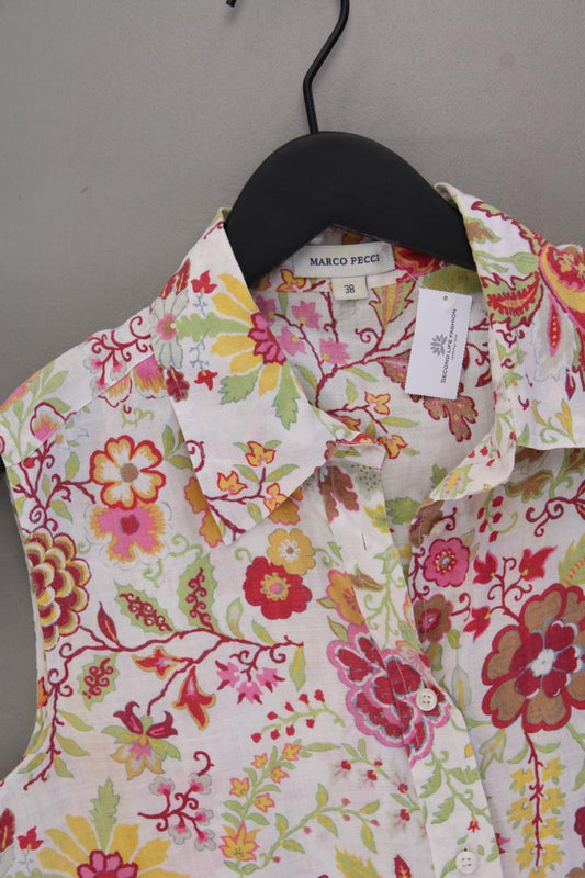 Marco Pecci Leinenbluse Gr. 38 mit Blumenmuster Ärmellos mehrfarbig
