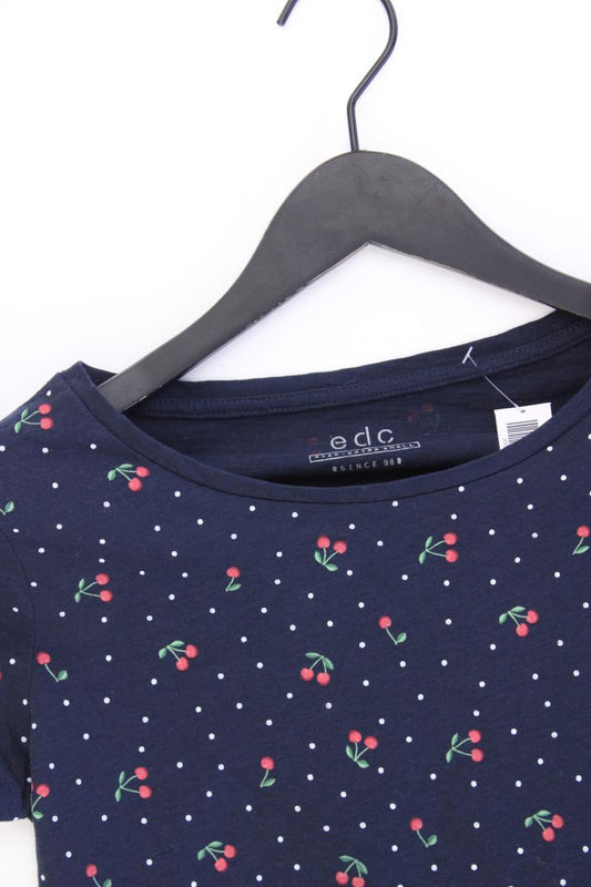 edc by Esprit Shirt mit Kirschmuster Gr. XS Kurzarm blau aus Baumwolle