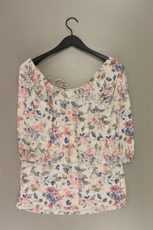 Schluppenbluse Gr. 44 mit Blumenmuster 3/4 Ärmel creme aus Viskose