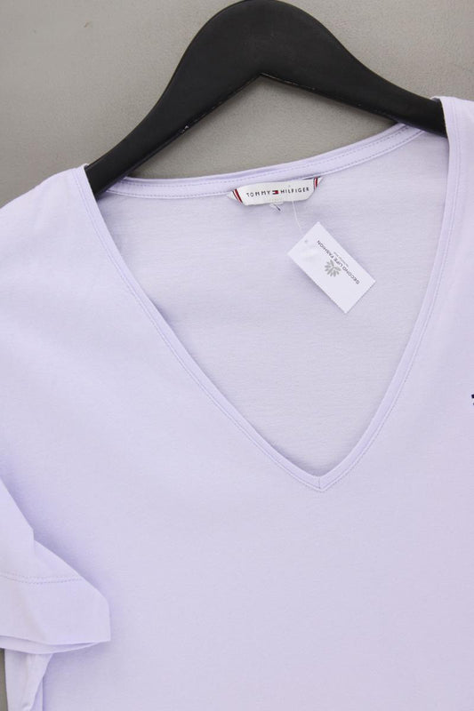 Tommy Hilfiger Shirt mit V-Ausschnitt Gr. L Kurzarm lila aus Baumwolle