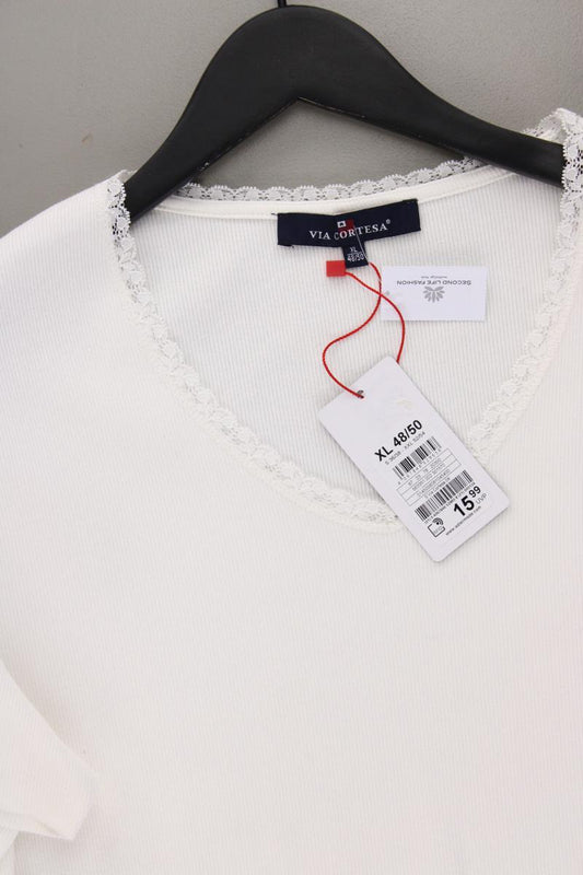 Via Cortesa Shirt mit V-Ausschnitt Gr. XL neu mit Etikett Kurzarm creme