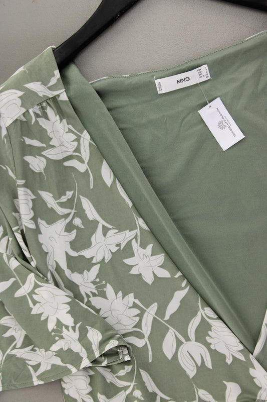 Mango Wickelkleid Gr. L mit Blumenmuster Kurzarm grün