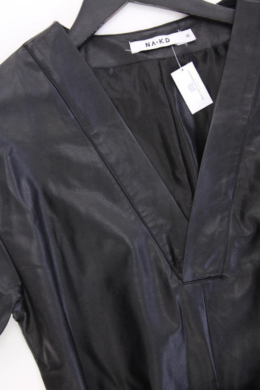 NA-KD Kunstlederkleid Gr. 40 neuwertig mit Gürtel Kurzarm schwarz