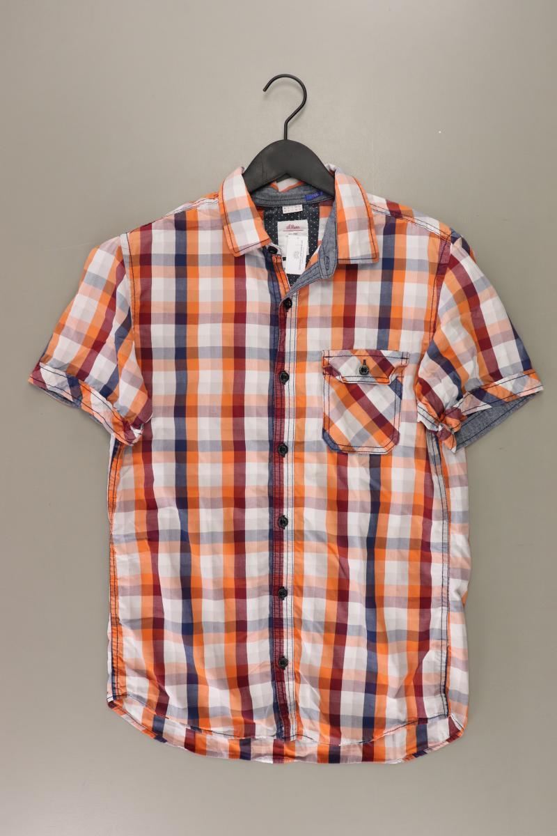 s.Oliver Karohemd für Herren Gr. M kariert Kurzarm orange aus Baumwolle