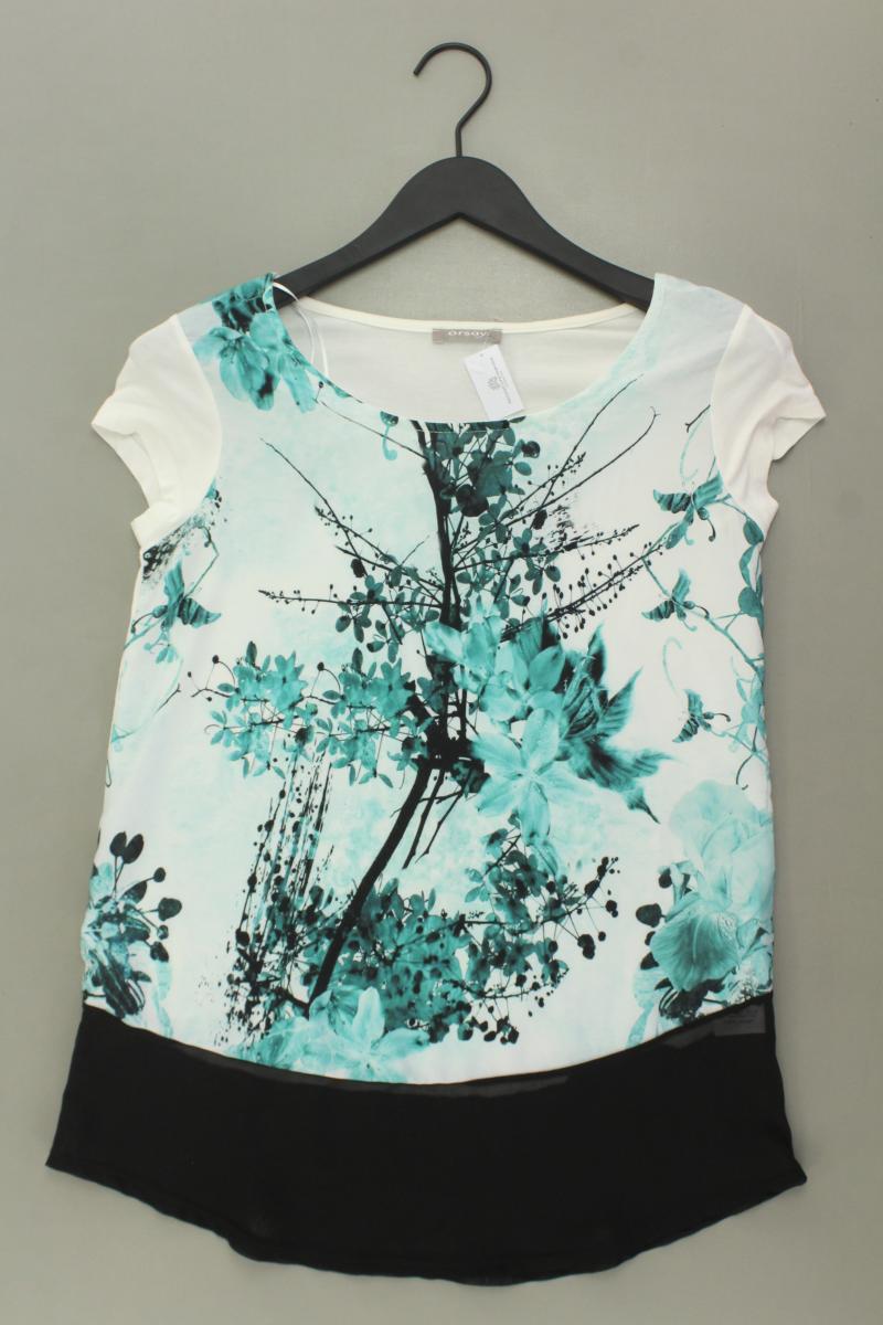 Kurzarmbluse Gr. 36 mit Blumenmuster weiß aus Polyester