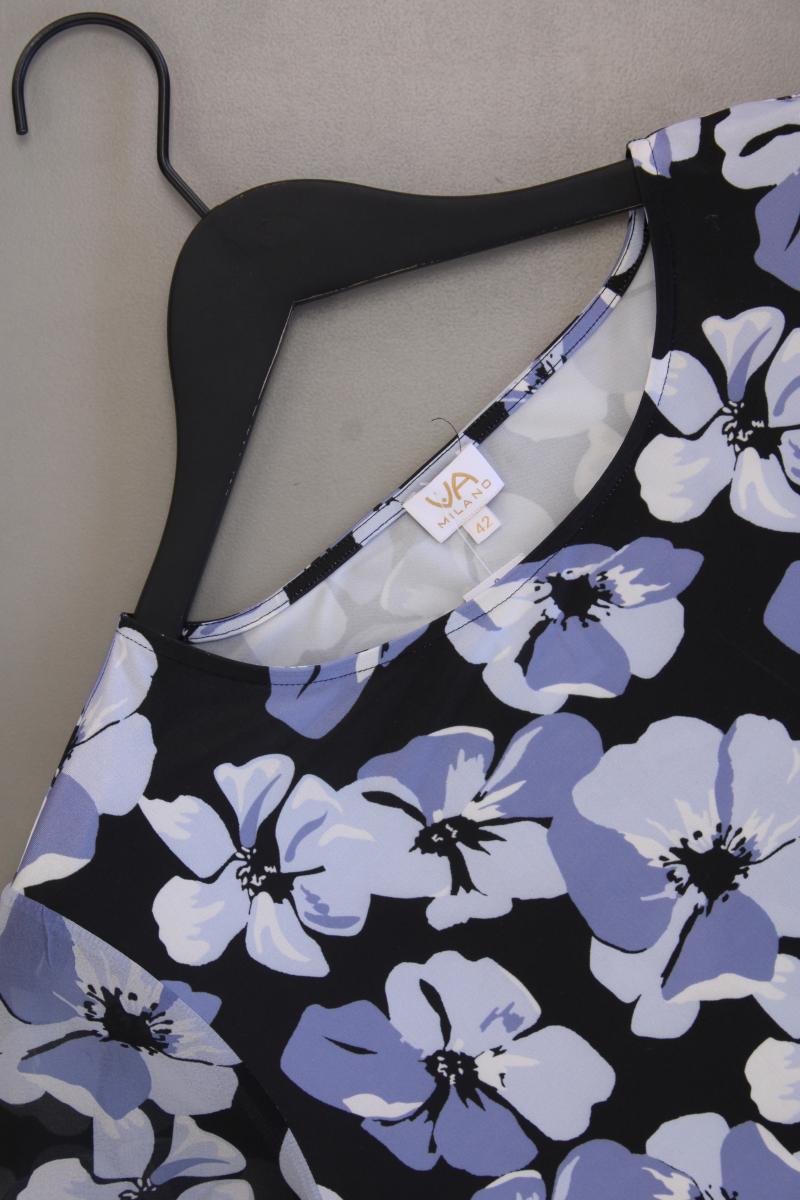 Regular Bluse Gr. 42 mit Blumenmuster 3/4 Ärmel blau aus Polyester