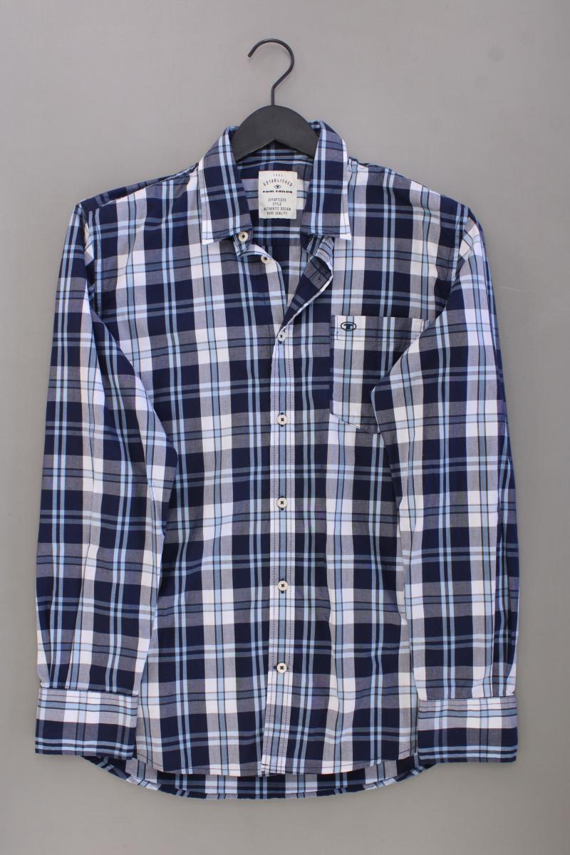 Tom Tailor Karohemd für Herren Gr. M kariert Langarm blau aus Baumwolle