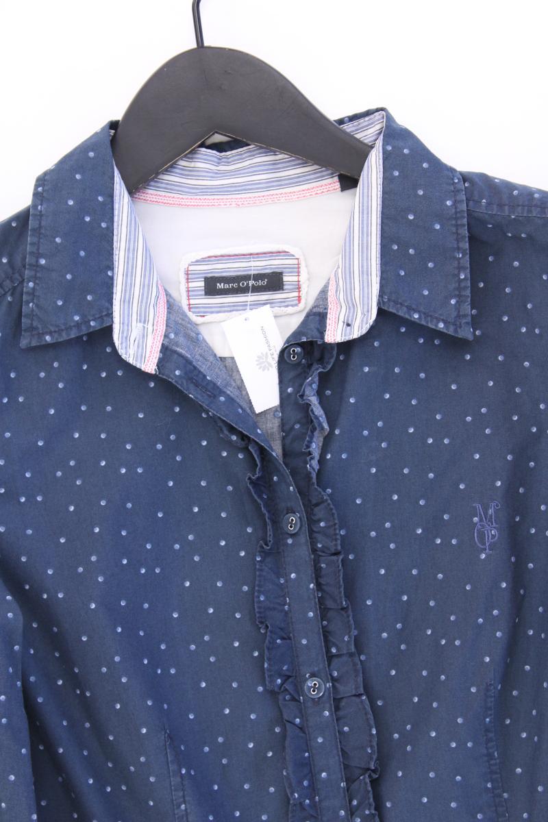 Marc O'Polo Rüschenbluse Gr. 36 gepunktet Langarm blau aus Baumwolle
