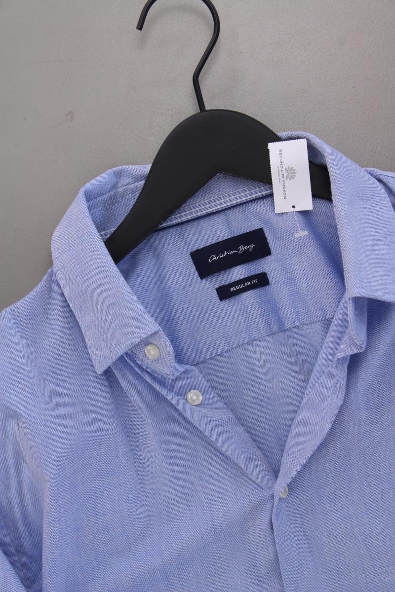 Christian Berg Kurzarmhemd für Herren Gr. Hemdgröße 43 blau aus Baumwolle