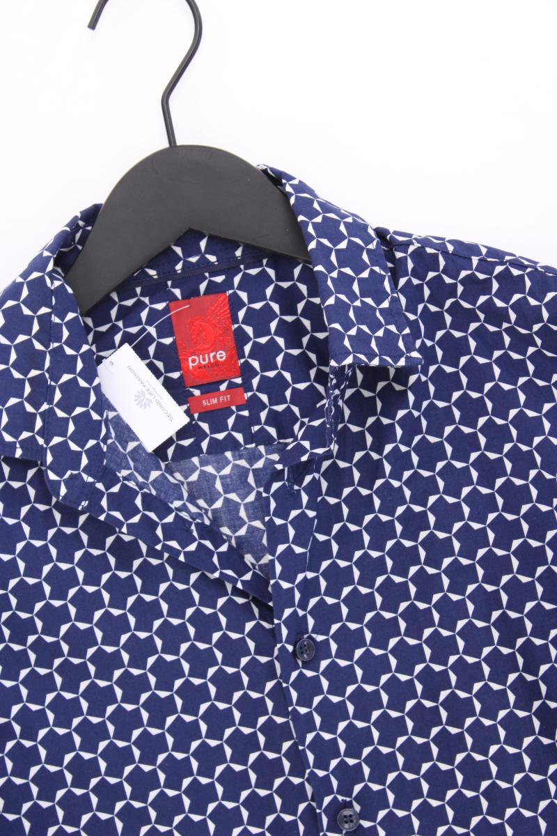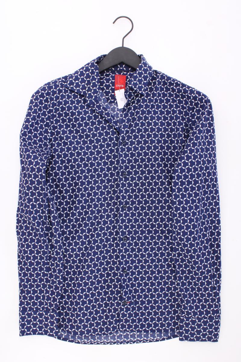 Pure Langarmhemd für Herren Gr. S geometrisches Muster blau aus Baumwolle