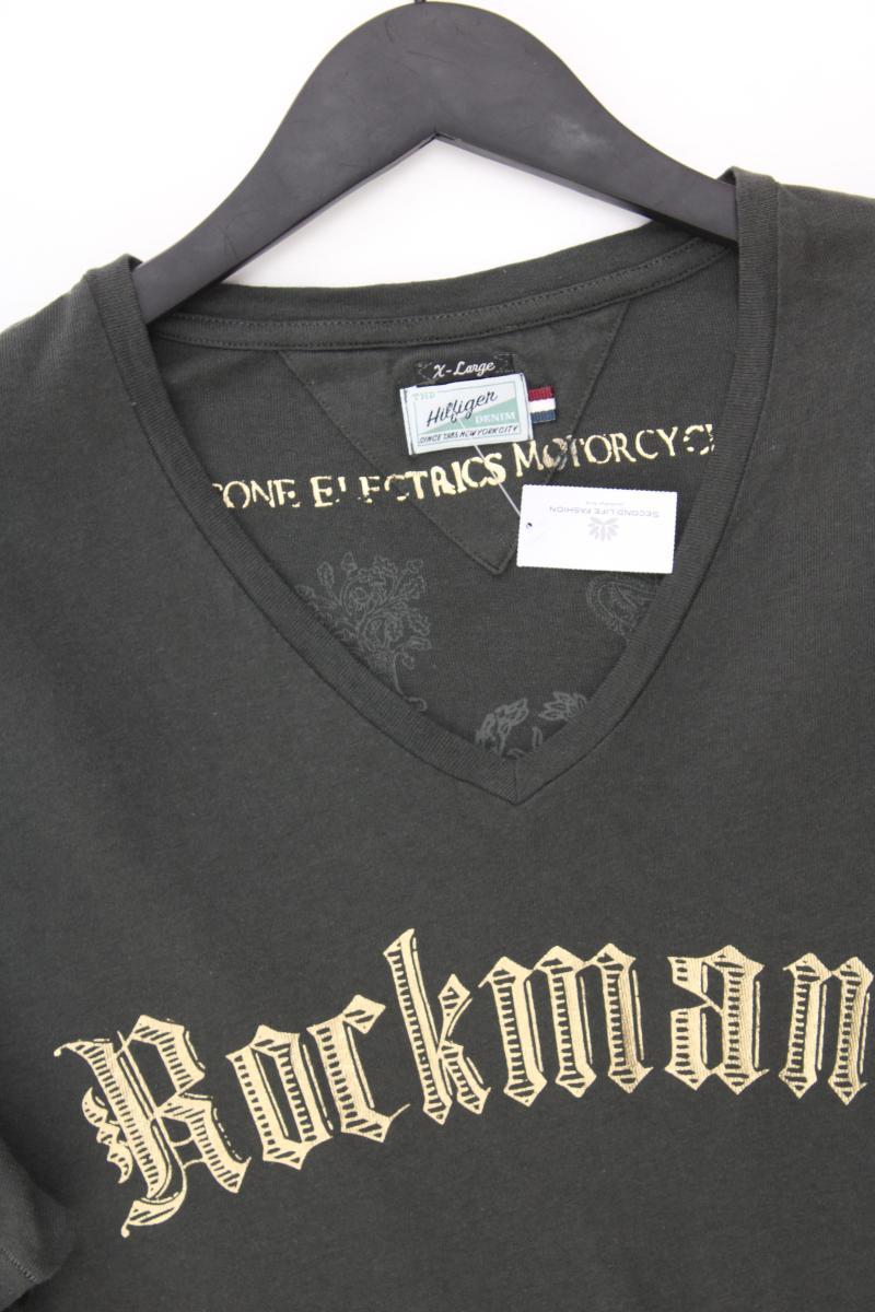 Hilfiger Denim Shirt mit V-Ausschnitt für Herren Gr. XL Kurzarm olivgrün