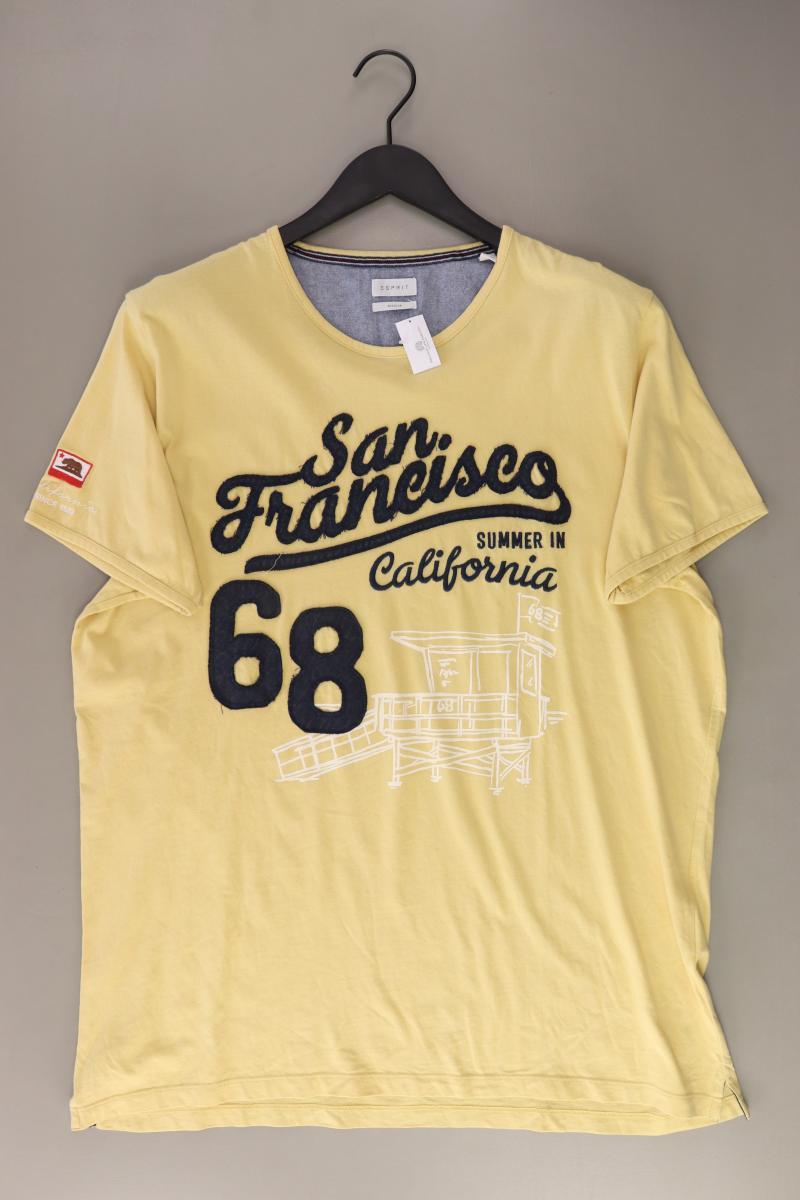 Esprit Printshirt für Herren Gr. XL Kurzarm gelb aus Baumwolle