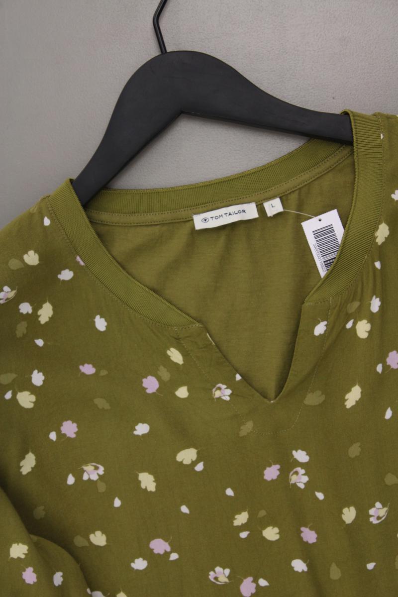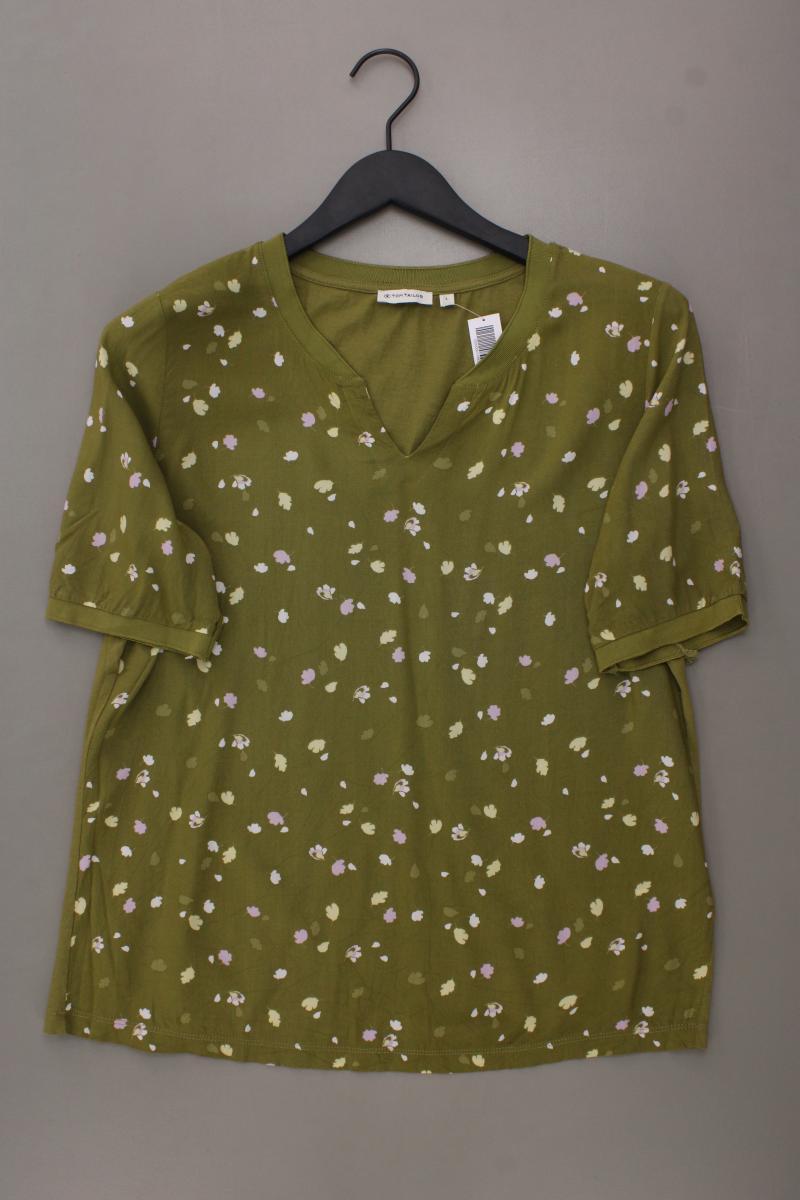 Tom Tailor Kurzarmbluse Gr. L mit Blumenmuster olivgrün aus Viskose
