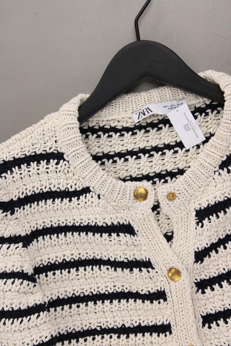 Zara Strickjacke Gr. L gestreift Langarm creme aus Baumwolle