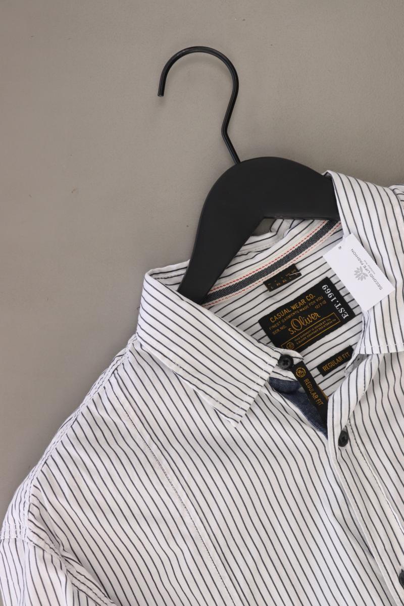 s.Oliver Langarmhemd für Herren Gr. L gestreift weiß aus Baumwolle