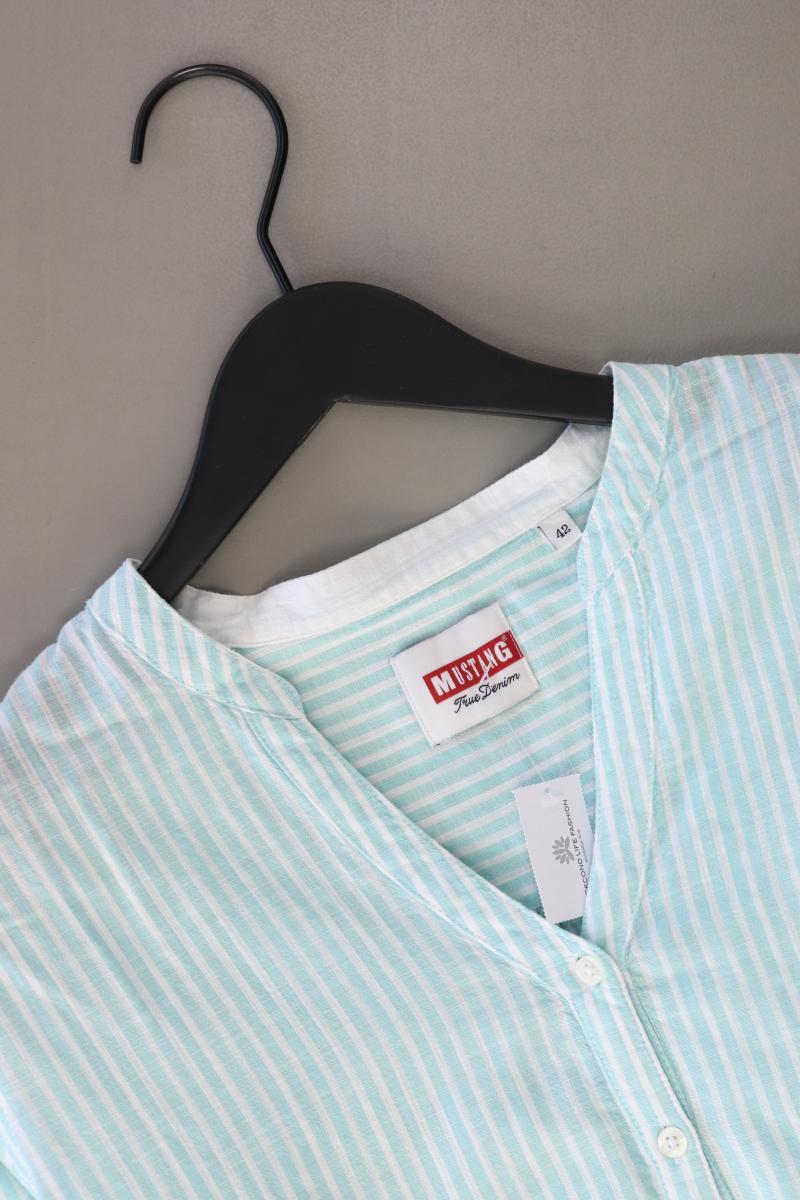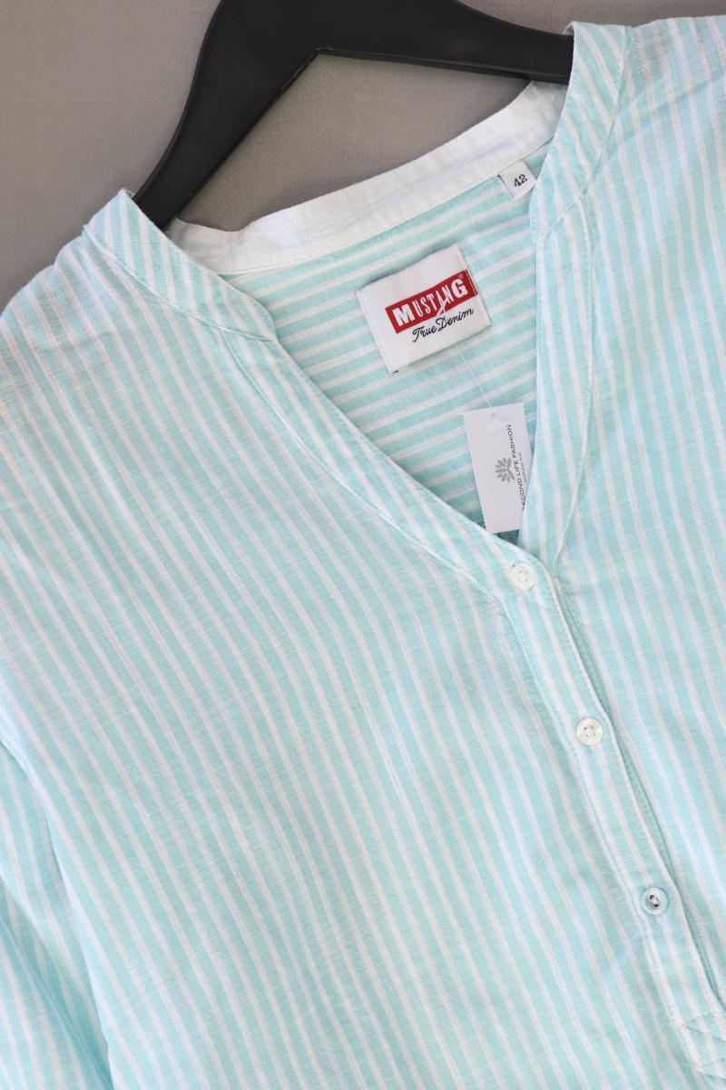 Mustang Langarmbluse Gr. 42 gestreift türkis aus Baumwolle