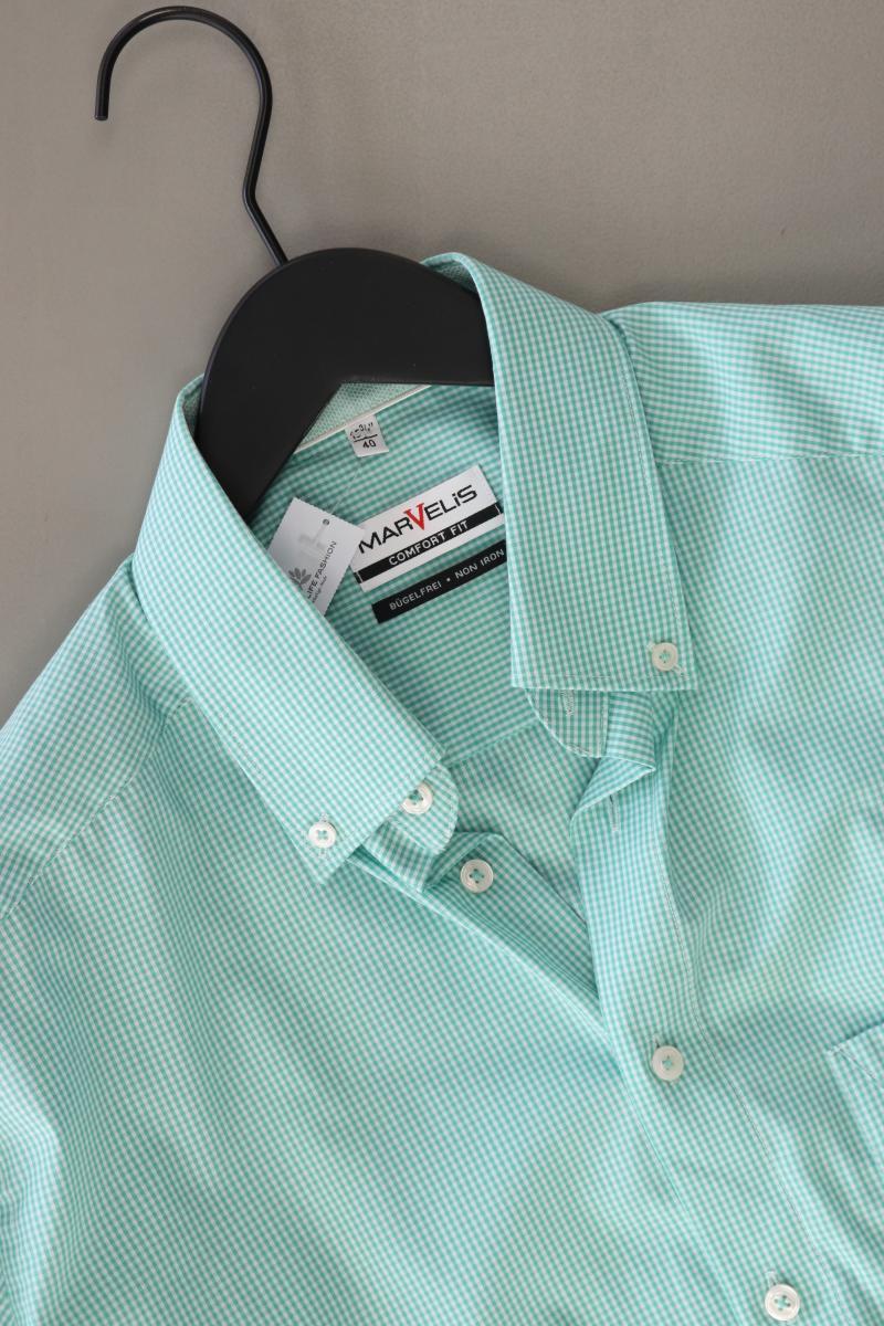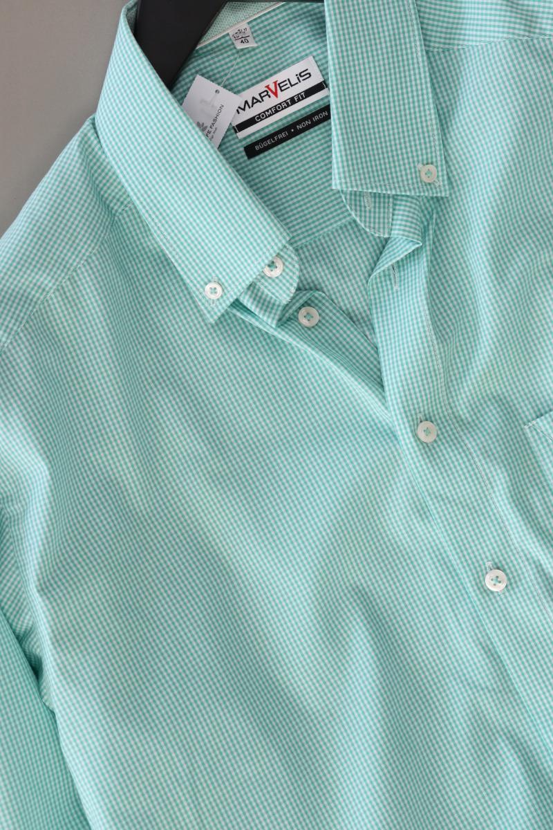 MARVELIS Karohemd für Herren Gr. Hemdgröße 40 kariert Langarm grün aus Baumwolle