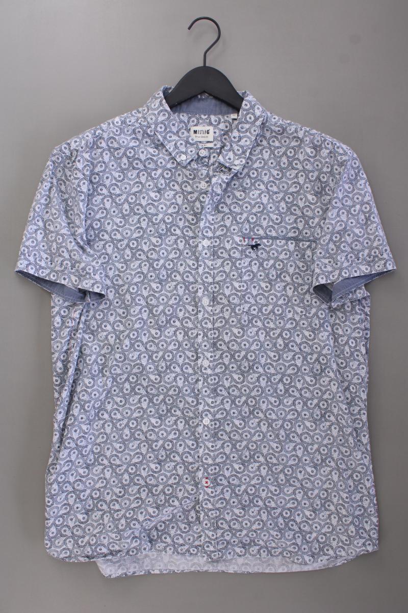 Mustang Kurzarmhemd für Herren Gr. XL geometrisches Muster grau