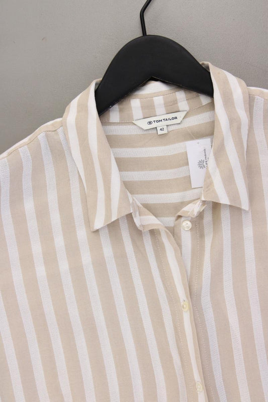 Tom Tailor Kurzarmbluse Gr. 42 gestreift creme aus Viskose